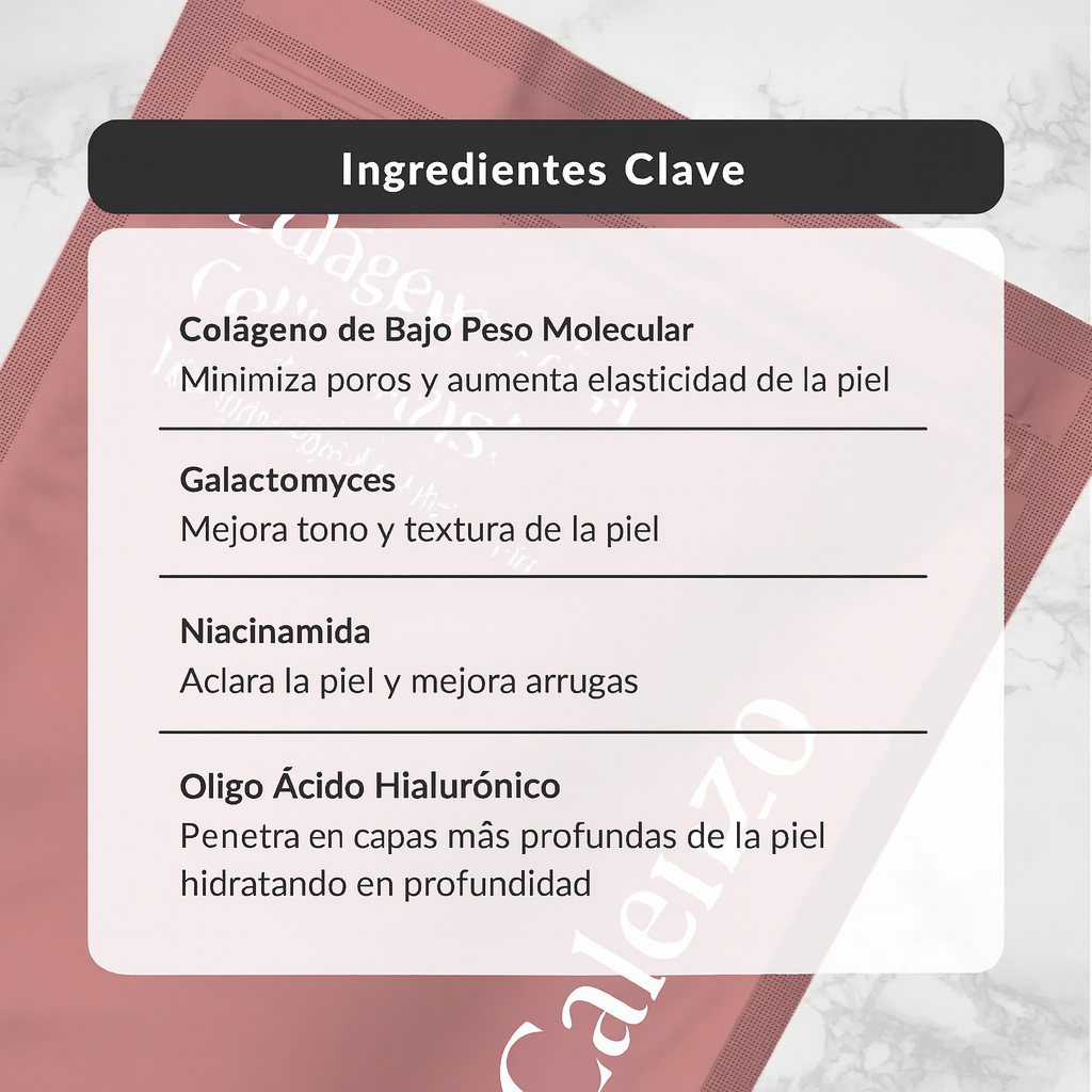 Colágeno de Bajo Peso Molecular: Ayuda a minimizar los poros y mejora la elasticidad de la piel.